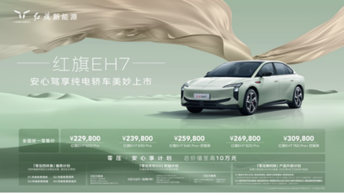 隨著環(huán)保意識(shí)的提升和新能源技術(shù)的飛速發(fā)展,新能源汽車成為全球汽車產(chǎn)業(yè)發(fā)展的新方向。紅旗新能源緊隨時(shí)代潮流,于3月20日在深圳舉辦“安心駕享·紅旗EH7上市發(fā)布會(huì)”,推出了其在新能源領(lǐng)域的里程碑產(chǎn)品——紅旗EH7,全國(guó)統(tǒng)一零售價(jià)為22.98萬(wàn)-30.98萬(wàn)元。這款車的推出,不僅增強(qiáng)了紅旗新能源的市場(chǎng)競(jìng)爭(zhēng)力,也為汽車行業(yè)的綠色轉(zhuǎn)型和技術(shù)革新樹立了新典范。