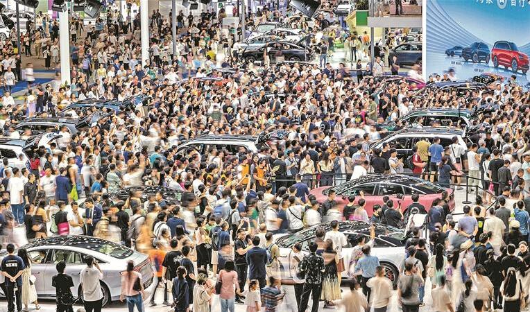 車展現(xiàn)場人潮涌動,前兩日迎來觀眾超30萬人次。