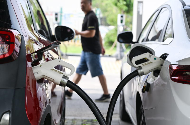 (資料圖)新能源汽車正在充電