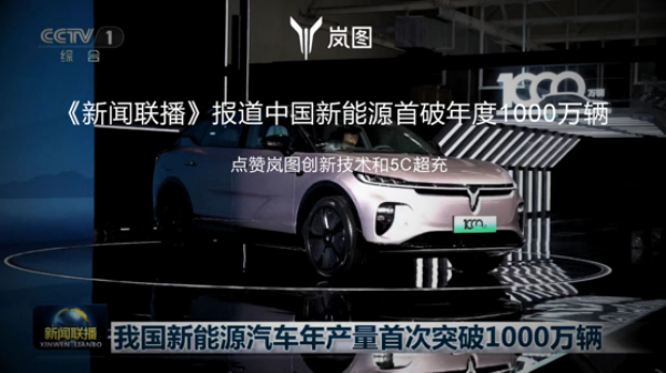 這是兩個(gè)月內(nèi),嵐圖汽車第二次出現(xiàn)在央視節(jié)目中。此前,11月14日,2024年中國(guó)新能源汽車1000萬輛達(dá)成活動(dòng)在嵐圖汽車云峰工廠盛大舉行,嵐圖知音作為1000萬輛中國(guó)新能源汽車下線的代表車型,分別被《朝聞天下》《新聞30分》《新聞聯(lián)播》等節(jié)目報(bào)道。