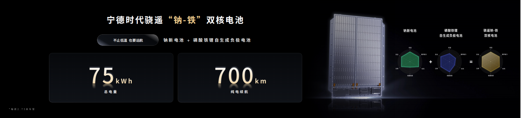 鈉-鐵雙核電池——:鈉新電池+磷酸鐵鋰自生成負(fù)極電池,充分利用鈉新電池的低溫性能,為用戶帶來不止低溫更要遠(yuǎn)航的極致體驗(yàn) 。