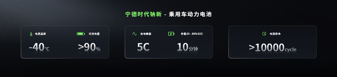 鈉新乘用車動(dòng)力電池的能量密度達(dá)175Wh/kg,為當(dāng)前全球鈉電最高,比肩磷酸鐵鋰電池;支持峰值5C的充電速率和500公里續(xù)航,實(shí)現(xiàn)超1萬個(gè)循環(huán)的壽命,同時(shí)大幅降低維護(hù)成本。在安全性上,鈉新電池從材料本征層面消除電池?zé)崾Э刂械闹家蛩?,?shí)現(xiàn)電池安全從"被動(dòng)防御"到"本質(zhì)安全"的跨越式突破。