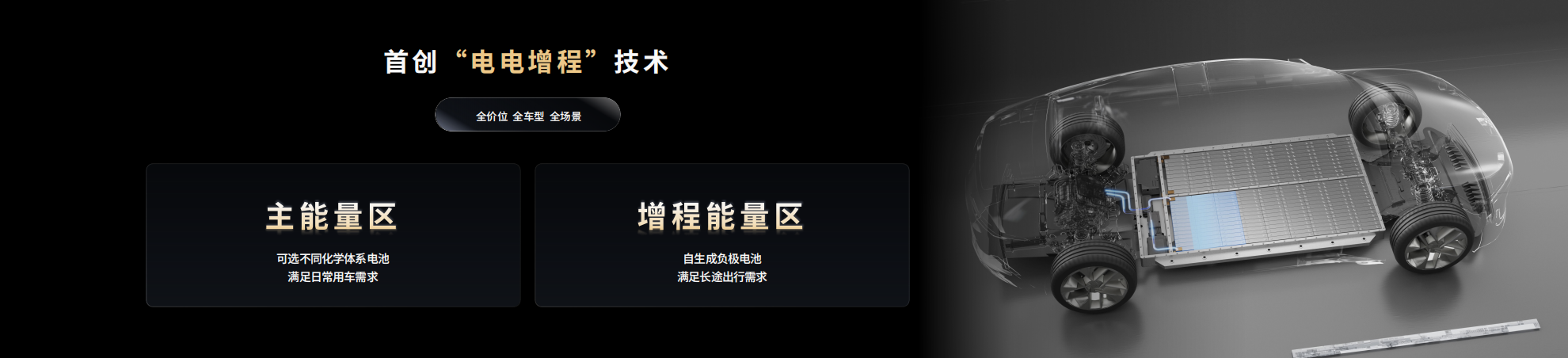 驍遙雙核電池首創(chuàng)的“電電增程”技術(shù),能夠結(jié)合車輛的行駛狀態(tài)和用戶駕駛習(xí)慣,智能調(diào)控兩個(gè)能量區(qū)的分配策略。主能量區(qū)可以根據(jù)用戶的駕駛習(xí)慣與場景,適配不同化學(xué)體系的電芯,滿足日常用車需求;增程能量區(qū)可采用高比能自生成負(fù)極技術(shù),提供更大的電量,以滿足用戶的長途出行需求。