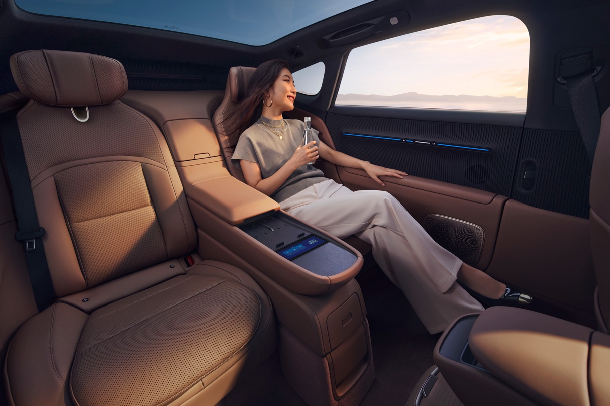 此外,新車還提供了VIP四座尊享包、納米水離子健康氧顏艙等配置,將豪華推向新高度。后排座椅支持加熱、通風(fēng)、8點(diǎn)位按摩與電動(dòng)調(diào)節(jié),配合車載智能冷暖箱與50W無線快充,無論是商務(wù)接待還是家庭出行,皆能盡享從容。納米水離子健康氧顏艙能在凈化空氣的同時(shí),實(shí)現(xiàn)保濕護(hù)膚、柔順秀發(fā)的貼心養(yǎng)護(hù)。