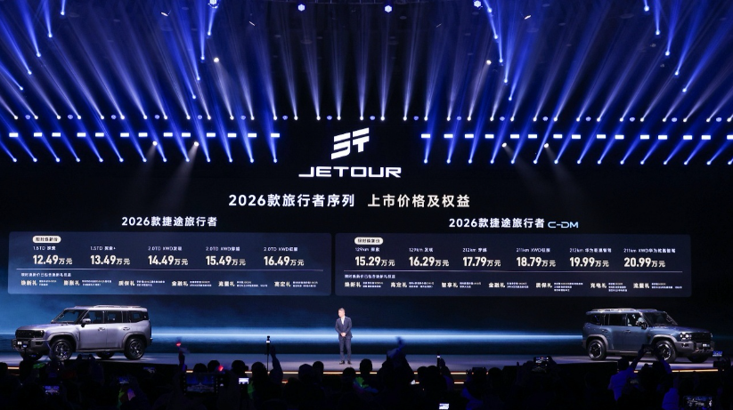 此次活動(dòng)上2026款捷途旅行者和捷途旅行者C-DM正式上市。2026款捷途旅行者,限時(shí)煥新價(jià)12.49萬(wàn)—16.49萬(wàn)元,并提供6重購(gòu)車(chē)好禮,捷途旅行者C-DM,限時(shí)煥新價(jià)15.29萬(wàn)—20.99萬(wàn)元,提供7重購(gòu)車(chē)好禮。
