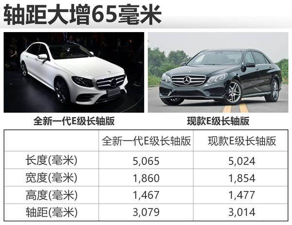 尺寸方面,奔馳全新一代E級的標(biāo)準(zhǔn)軸距版在長度和軸距方面較之現(xiàn)款大幅增加,專為中國研發(fā)的長軸版本尺寸比現(xiàn)款有所增加,新車長寬高分別為5,065*1,860*1,467毫米,軸距為3,079毫米,與現(xiàn)款E級相比車身長度增加41毫米,寬度增加6毫米,軸距長度更是增加65毫米。(圖/文 網(wǎng)通社 郭王虎)