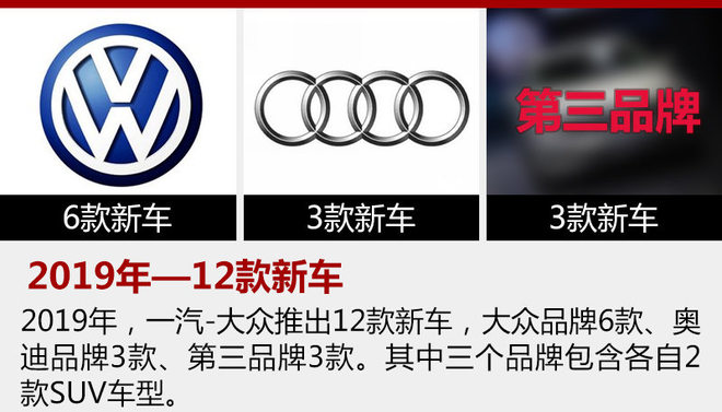 2017年進(jìn)入下半年,一汽-大眾就開始籌劃2025戰(zhàn)略,以完成更高的銷量目標(biāo)和更長遠(yuǎn)的發(fā)展。同時,官方還表示將在兩年內(nèi)推出23款新車,并包含大眾、奧迪以及第三品牌。此前,一汽-大眾汽車有限公司企業(yè)品牌資訊發(fā)言人、公關(guān)總監(jiān)黃龍向網(wǎng)通社表示:“在未來的車型投放方面, 2018年共有11款新品投放,其中大眾品牌7款,奧迪品牌4款。”