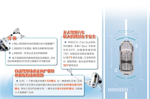 此外,無人駕駛汽車要走向大規(guī)模應用,還涉及道路基礎設施建設、法律法規(guī)完善,也涉及人們自身交通意識和法律法規(guī)意識的培養(yǎng),需要統(tǒng)籌解決技術、商業(yè)、法律法規(guī)、城市治理等各個方面的問題。