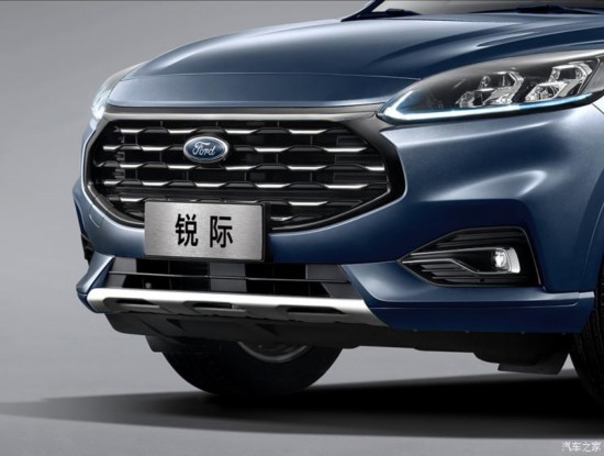 外觀來看,福特銳際整體基本延續(xù)了海外全新翼虎設計,高配版車型還使用了針對中國市場專門設計的造型,采用了全新造型的六邊形前格柵,并在上方增加一根橫向鍍鉻飾條。同時福特車標下移,嵌入到了格柵內部。