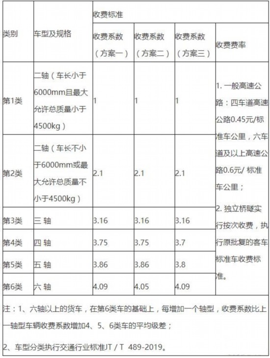 貨車計費方式由計重收費改為按車型收費。以前貨車計重收費,是以收費站現場稱出的車貨總質量為依據計收通行費,不同噸位車輛收費金額不同,“多裝多收,少裝少收”。改為按車型收費后,以車輛軸數為依據計收通行費,同一軸型車輛,不論裝多裝少,都執(zhí)行同一收費標準。