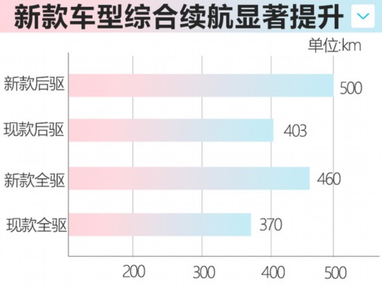 MARVEL X是榮威在2018年推出的一款A(yù)+級(jí)純電動(dòng)SUV,在售車型包括兩電機(jī)后驅(qū)、三電機(jī)全驅(qū)兩款車型,綜合續(xù)航里程分別為403km、370km。日前,網(wǎng)上車市獲得了新款MARVEL X的相關(guān)消息,新車針對續(xù)航進(jìn)行了大幅提升,兩電機(jī)后驅(qū)、三電機(jī)全驅(qū)兩款車綜合續(xù)航分別可達(dá)500km、460km。