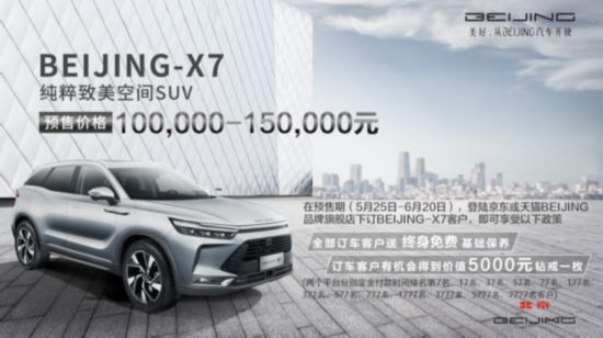 近日,BEIJING汽車品牌在廣州增城工廠中舉行了一場(chǎng)圍繞BEIJING-X7線上發(fā)布會(huì),會(huì)上公布了BEIJING-X7的預(yù)售價(jià)格,區(qū)間為10.00-15.00萬(wàn)元。據(jù)預(yù)測(cè),6月20日預(yù)售期結(jié)束后,BEIJING-X7會(huì)正式上市。