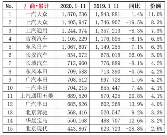 具體來看,如果最后一個(gè)不出意外,一汽-大眾、上汽大眾和上汽通用將繼續(xù)成為中國市場年度銷量前三大乘用車企。