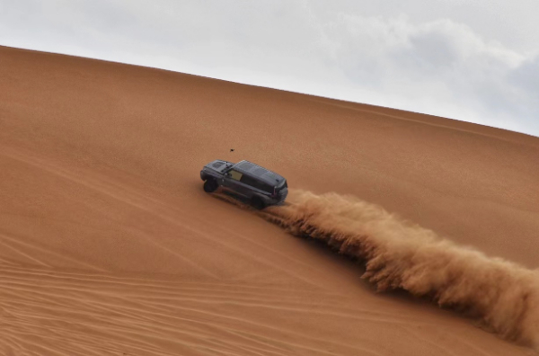 “快走沙、慢走水”是越野圈的一句經(jīng)典老話,也是無數(shù)越野玩家的經(jīng)驗之談。在沙漠里,道路過于“松軟”,具有很多不確定性,車輪非常容易打滑甚至陷入沙坑,陷沙、翻車的情況屢見不鮮,只有快速通過才是硬道理,而要快速通行或是過坑、沖坡,必須依靠強悍的動力、強大的四驅(qū)以及細膩的越野技術(shù)。猛士品牌猛士917基于M TECH猛士智能越野架構(gòu)開發(fā),純電版和增程版分別能輸出最大功率1000馬力和800馬力,采用兩擋變速箱,峰值輪邊扭矩更是超過16000牛·米,擁有超強暴發(fā)力。