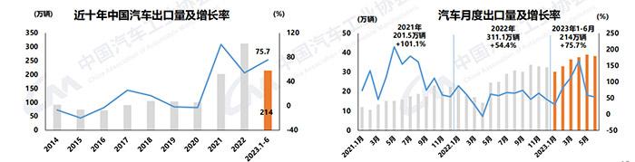 中汽協(xié)數據顯示,6月,汽車企業(yè)出口38.2萬輛,環(huán)比下降1.7%,同比增長53.2%。上半年,汽車企業(yè)出口214萬輛,同比增長75.7%。其中,新能源汽車出口53.4萬輛,同比增長1.6倍。