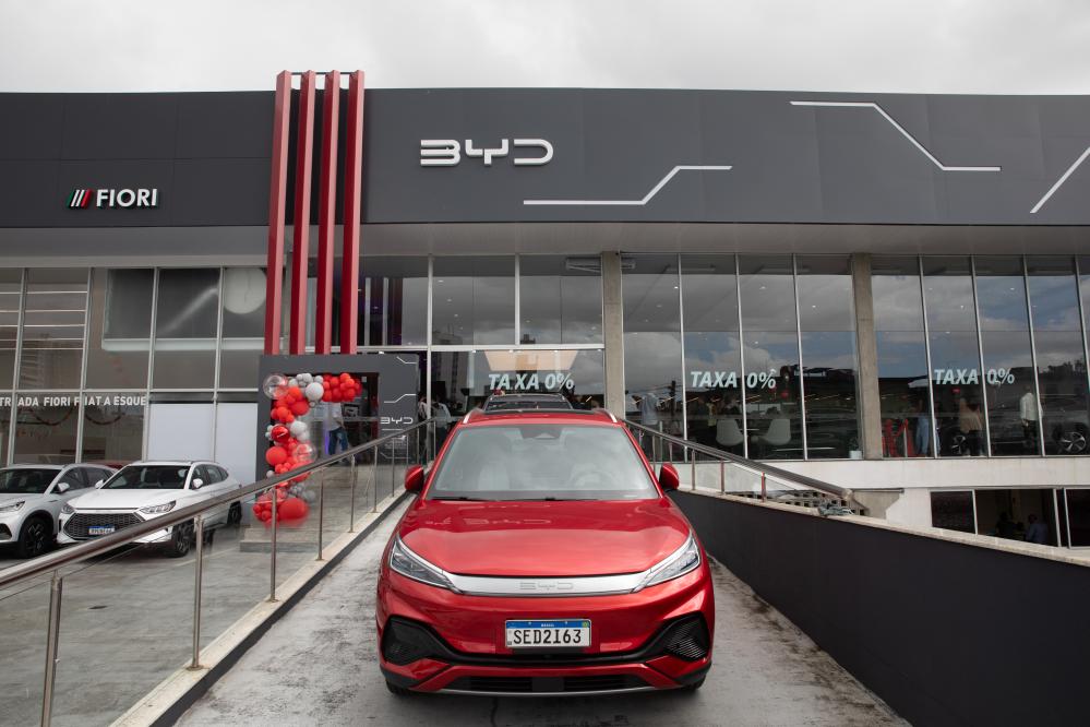 這是在巴西巴伊亞州拍攝的一家比亞迪純電動(dòng)汽車銷售店鋪。新華社記者 王天聰 攝