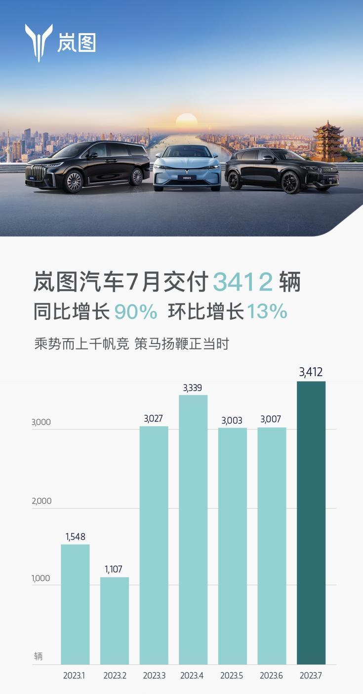 | 嵐圖汽車7月銷量3412輛,同比上漲90% |