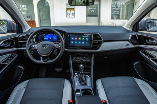 內(nèi)飾部分,捷達VS7 ABT版采用黑灰雙色設(shè)計,在中控臺右側(cè)帶有ABT標識。此外,其座椅頭枕也加入了ABT專屬設(shè)計元素。