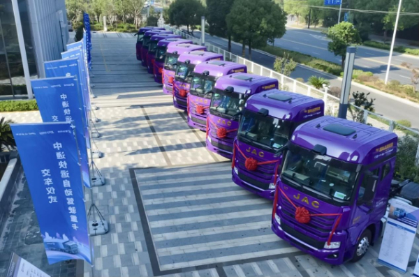在重型商用車領(lǐng)域,江淮重卡“火力全開”,首款實(shí)現(xiàn)收費(fèi)站到收費(fèi)站領(lǐng)航自動(dòng)駕駛功能的江淮跨越K7智能版批量交付中通快運(yùn),助力快遞快運(yùn)行業(yè)智慧發(fā)展;百臺(tái)新能源重卡批量交付,也將為城市建設(shè)綠色運(yùn)輸起到推動(dòng)及示范作用。