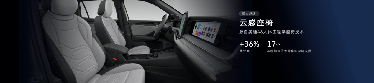 舒適體驗(yàn)上,全新探岳L配備了專為中國用戶研發(fā)的云感座椅,座椅柔軟度提升了36%,坐上去可以完全放松。除柔軟外,云感座椅還擁有Audi A8同款人體工學(xué)座椅設(shè)計(jì),提供身體從靠背到大腿共17處不同部位的差異化定制支撐,即使長途駕駛也不感疲憊,讓更多用戶體驗(yàn)到越級(jí)的舒適。