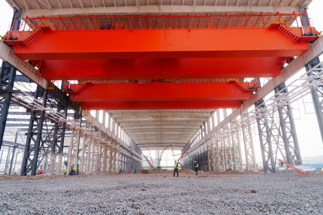 項目建設(shè)鋼結(jié)構(gòu)吊裝進度突破90%,地面碎石層施工完成80%