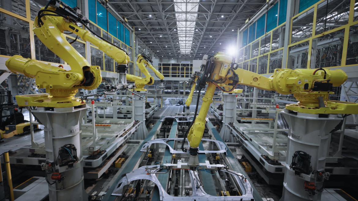 焊裝車間采用全自動(dòng)化生產(chǎn)線與柔性生產(chǎn)方式,配備智能焊接系統(tǒng)、涂膠影像系統(tǒng)及MES系統(tǒng)。通過實(shí)時(shí)監(jiān)測焊接數(shù)據(jù)與指標(biāo),及時(shí)發(fā)現(xiàn)并解決潛在品質(zhì)問題,保障焊接品質(zhì)與效率。