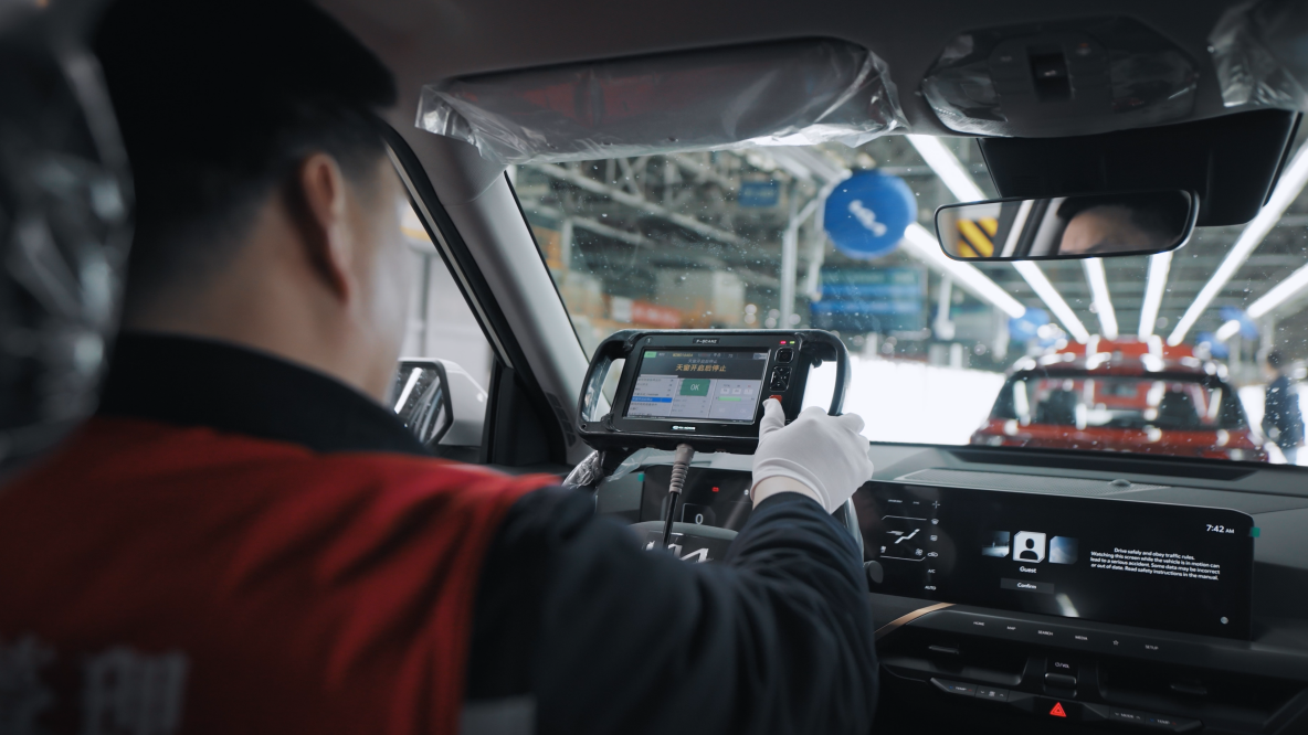 總裝車間作為汽車生產(chǎn)最后一道關(guān)卡,采用柔性生產(chǎn)線與數(shù)字化生產(chǎn)系統(tǒng),配備ONEKIT物流系統(tǒng)、緊固履歷系統(tǒng)及工業(yè)視覺技術(shù)。實(shí)時(shí)監(jiān)測總裝數(shù)據(jù)與指標(biāo),確保每輛下線汽車符合全球統(tǒng)一生產(chǎn)標(biāo)準(zhǔn),保障總裝品質(zhì)與效率。
