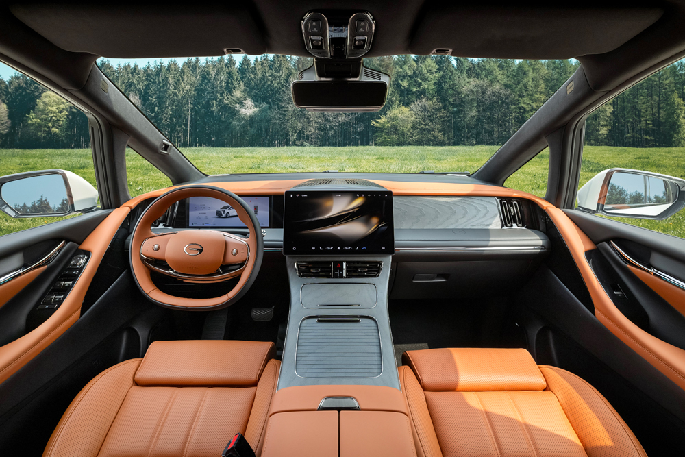 新車外觀設(shè)計以“一品麒麟”為核心,“五縱七橫”前格柵造型取自于瑞獸麒麟的麟片,輔以剛?cè)岵?jì)的車身線條展現(xiàn)磅礴氣勢。內(nèi)飾運用北美百年原木構(gòu)筑潑墨山水意境,使車內(nèi)自成一方天地。