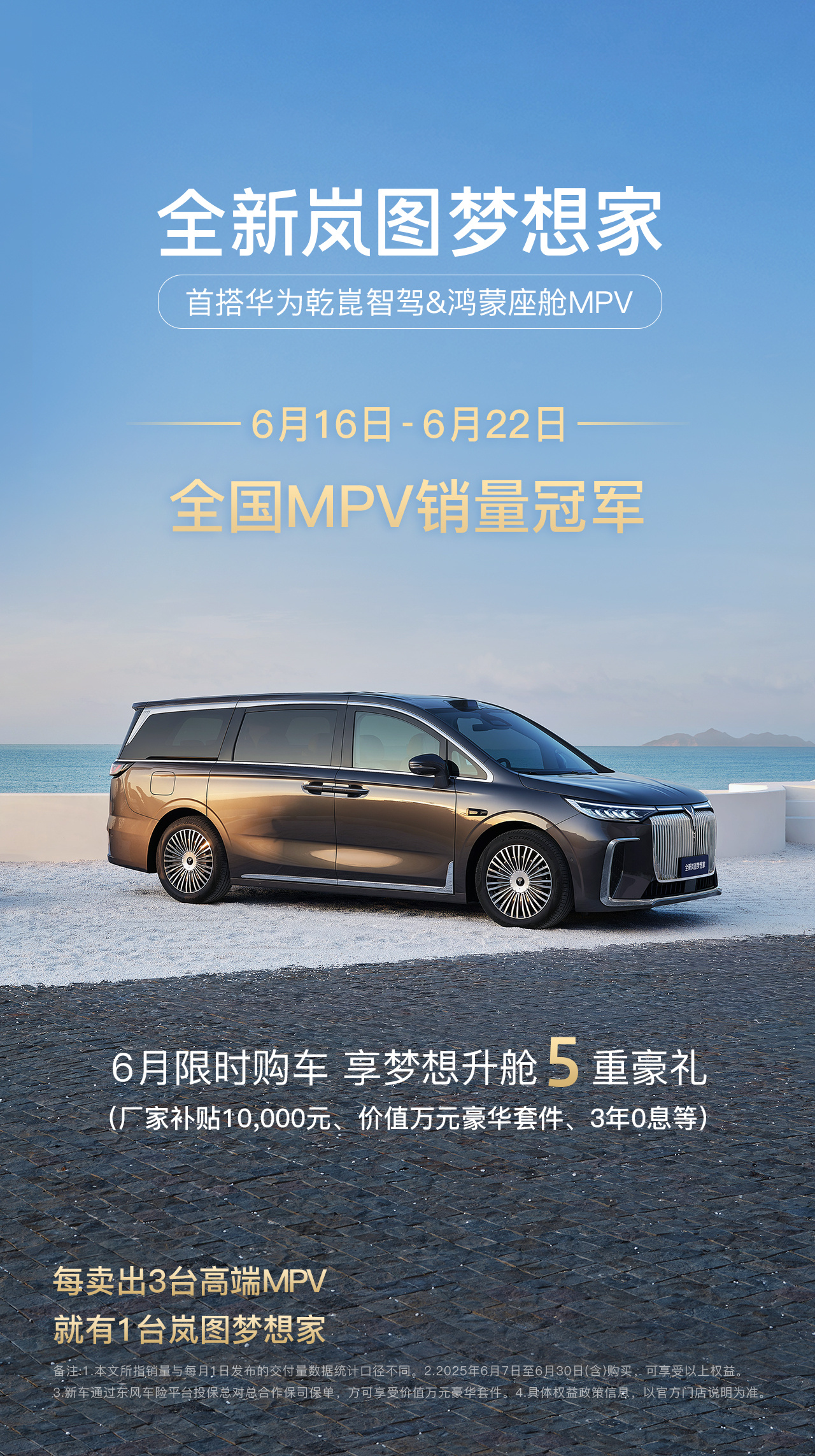 值得一提的是,嵐圖旗下大五座新車嵐圖FREE+于6月24日開啟預(yù)售,新車定位極智駕享大五座SUV,標(biāo)配華為乾崑智駕ADS 4和鴻蒙座艙5,市場目標(biāo)為細(xì)分領(lǐng)域前三,努力成為繼夢想家之后又一熱銷單品。