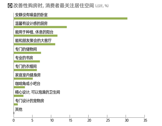 除了“有的住”,人們更想“住的好”。研究假設(shè)未來居住改善時(shí)如何選擇,30.4%受訪者最關(guān)心臥室;14.2%受訪者最關(guān)注廚房。下班后能自在地睡一覺,或者下廚做一頓美食,或許是當(dāng)代城市人對(duì)美好生活的直接想象。