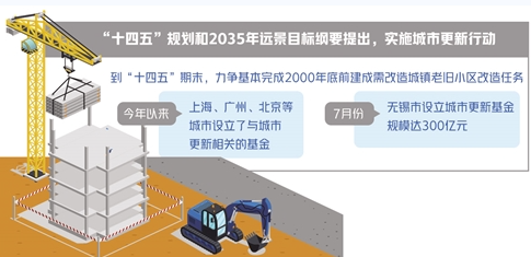 房企參與城市更新有望獲得更多支持?!笆奈濉币?guī)劃和2035年遠(yuǎn)景目標(biāo)綱要明確提出,實(shí)施城市更新行動(dòng)。老舊小區(qū)改造是城市更新的重要內(nèi)容之一,我國提出,到“十四五”期末,結(jié)合各地實(shí)際,力爭基本完成2000年底前建成需改造城鎮(zhèn)老舊小區(qū)改造任務(wù)。住房和城鄉(xiāng)建設(shè)部有關(guān)負(fù)責(zé)人曾表示,鼓勵(lì)房地產(chǎn)開發(fā)企業(yè)參與老舊小區(qū)改造。今年以來,多省市密集出臺(tái)相關(guān)舉措推進(jìn)城市更新。除上海設(shè)立了城市更新基金以外,據(jù)報(bào)道,7月份無錫市也設(shè)立了城市更新基金,基金規(guī)模達(dá)300億元,專項(xiàng)用于投資無錫舊城區(qū)改造和城市更新項(xiàng)目規(guī)劃、建設(shè)、開發(fā)及運(yùn)營等。此外,廣州、北京等城市也設(shè)立了與城市更新相關(guān)的基金。