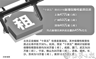 據(jù)了解,“十四五”期間,上海計(jì)劃新增保障性租賃住房47萬套(間)、廣州計(jì)劃新增60萬套(間)、深圳計(jì)劃新增40萬套(間),均占新增住房供應(yīng)總量的45%左右。北京正在編制“十四五”住房發(fā)展規(guī)劃,其中保障性租賃住房占比將不低于30%。杭州、西安“十四五”期間計(jì)劃新增保障性租賃住房均為30萬套(間),成都、廈門、武漢為25萬套(間),寧波、佛山為20萬套(間),濟(jì)南、福州、長(zhǎng)沙、蘇州為15萬套(間),南京12.5萬套(間)。