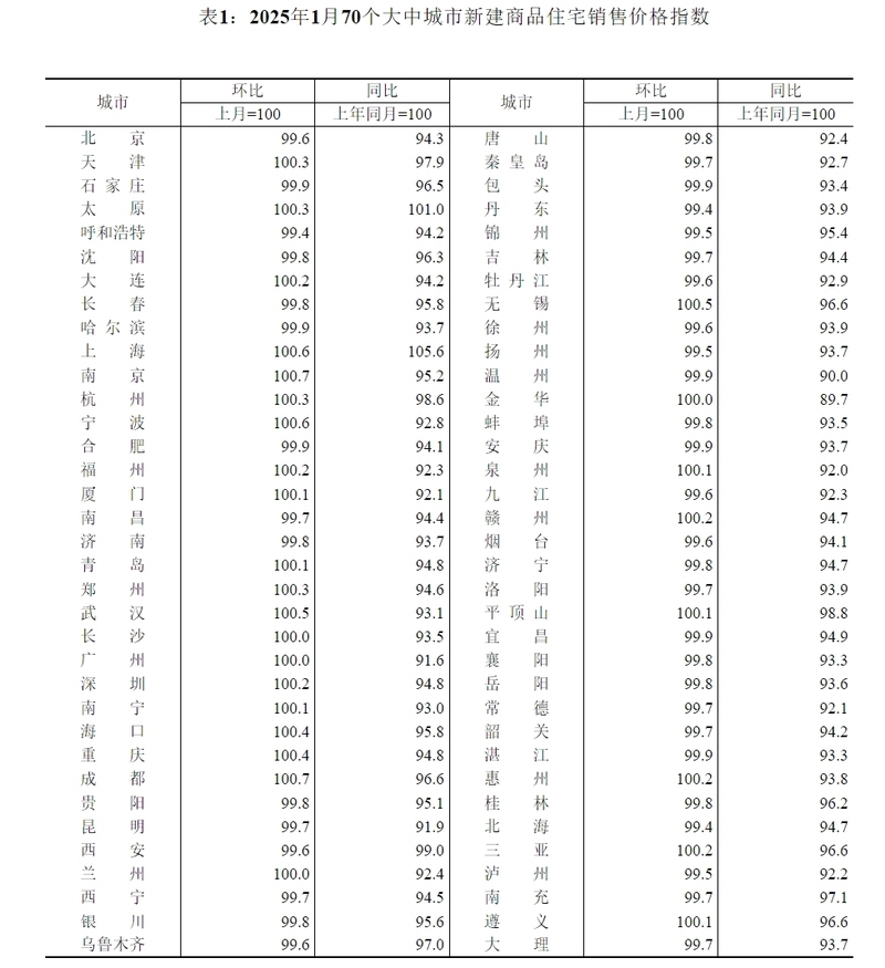 國家統(tǒng)計局城市司首席統(tǒng)計師王中華解讀稱:“2025年1月份,70個大中城市中,一線城市商品住宅銷售價格環(huán)比繼續(xù)上漲,二三線城市環(huán)比總體略降;一二三線城市同比降幅均持續(xù)收窄。”