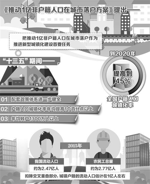 推動(dòng)1億非戶籍人口在城市落戶,有利于促進(jìn)社會(huì)公平,有利于助推經(jīng)濟(jì)增長(zhǎng),也有利于讓人民群眾共享改革成果。在這一進(jìn)程中,要充分體現(xiàn)“以人為本”,充分尊重群眾意愿。同時(shí),也要加快財(cái)政配套機(jī)制改革,切實(shí)提高城鎮(zhèn)化的速度和質(zhì)量—— 如何推動(dòng)1億左右農(nóng)業(yè)轉(zhuǎn)移人口和其他常住人口等非戶籍人口在城市落戶,使有能力在城鎮(zhèn)穩(wěn)定就業(yè)和生活的農(nóng)業(yè)轉(zhuǎn)移人口舉家進(jìn)城落戶,是我國(guó)推進(jìn)新型城鎮(zhèn)化面臨的迫切任務(wù)。不久前,國(guó)務(wù)院辦公廳印發(fā)了《推動(dòng)1億非戶籍人口在城市落戶方案》(以下簡(jiǎn)稱《方案》)。 有關(guān)專家在接受記者采訪時(shí)表示,推動(dòng)1億非戶籍人口在城市落戶,必須充分尊重群眾自主定居意愿,把落戶的選擇權(quán)真正交給農(nóng)業(yè)轉(zhuǎn)移人口、交給非戶籍人口。同時(shí),也要充分發(fā)揮財(cái)政手段激勵(lì)作用,抓緊補(bǔ)齊公共服務(wù)短板。 避免淪為造城運(yùn)動(dòng) 根據(jù)《方案》,“十三五”期間,城鄉(xiāng)區(qū)域間戶籍遷移壁壘加速破除,配套政策體系進(jìn)一步健全,戶籍人口城鎮(zhèn)化率年均提高1個(gè)百分點(diǎn)以上,年均轉(zhuǎn)戶1300萬(wàn)人以上。 目前,在我國(guó)流動(dòng)人口中,既有農(nóng)業(yè)轉(zhuǎn)移人口,也有城鎮(zhèn)戶籍人口。2015年,我國(guó)流動(dòng)人口約為2.47億人;農(nóng)民工總量為2.77億人,跨鄉(xiāng)鎮(zhèn)的外出農(nóng)民工為1.69億人,扣除交叉重疊部分,城鎮(zhèn)戶籍的流動(dòng)人口估計(jì)在1億人左右。 國(guó)家行政學(xué)院經(jīng)濟(jì)學(xué)教研部主任張占斌教授說(shuō),過(guò)去許多地方的城鎮(zhèn)化以修樓蓋房為主,但人口的城鎮(zhèn)化沒有同步跟上,造成很多地方出現(xiàn)“空城”“鬼城”。此次國(guó)務(wù)院發(fā)文重點(diǎn)部署1億非戶籍人口在城市落戶,有利于切實(shí)提高城鎮(zhèn)化質(zhì)量,避免城鎮(zhèn)化淪為“造城運(yùn)動(dòng)”,也可以讓更多人共享新型城鎮(zhèn)化的發(fā)展成果。 “根據(jù)《方案》,不管是農(nóng)業(yè)轉(zhuǎn)移人口還是城鎮(zhèn)間轉(zhuǎn)移人口,都可以根據(jù)自身?xiàng)l件和居住城市的實(shí)際,確定自己能否落戶、是否要落戶。如此一來(lái),流動(dòng)人口有了更明確的預(yù)期,才能更好地發(fā)揮城鎮(zhèn)化在擴(kuò)內(nèi)需中的作用?!敝袊?guó)城市和小城鎮(zhèn)改革發(fā)展中心政策研究處處長(zhǎng)王大偉表示,由于戶籍制度附帶著巨大的公共福利,在很大程度上也是一種身份的象征,也是城鄉(xiāng)二元結(jié)構(gòu)的重要標(biāo)志?!斗桨浮芬蠓砰_放寬落戶條件,實(shí)現(xiàn)新老居民同城同待遇,有利于促進(jìn)社會(huì)公平。 尊重群眾意愿是關(guān)鍵 許多農(nóng)業(yè)轉(zhuǎn)移人口雖然愿意在城市里工作、生活,但把戶口落在城市(鎮(zhèn))的意愿并不高。專家表示,這主要有兩個(gè)原因。一方面,國(guó)務(wù)院此前已出臺(tái)《居住證暫行條例》,明確縣級(jí)以上人民政府及其有關(guān)部門應(yīng)當(dāng)為居住證持有人提供義務(wù)教育、就業(yè)、基本公共衛(wèi)生等六項(xiàng)基本公共服務(wù),并提供諸多事項(xiàng)的辦事便利。 另一方面,農(nóng)村戶籍人口享有農(nóng)村土地承包權(quán)、宅基地使用權(quán)、集體收益分配權(quán)等權(quán)益,雖然各類文件都規(guī)定轉(zhuǎn)戶不以退出權(quán)益為前提條件,但多數(shù)農(nóng)業(yè)轉(zhuǎn)移人口仍然存在顧慮,不愿意輕易遷戶。 記者了解到,在福建晉江,外來(lái)人口達(dá)到100多萬(wàn)人,政府也全面放開了落戶條件,降低了落戶門檻,但落戶人口并沒有出現(xiàn)井噴式的增長(zhǎng)。自2012年以來(lái),晉江市外來(lái)落戶人口不足3萬(wàn)人。 《方案》提到,充分尊重群眾自主定居意愿,堅(jiān)決打破“玻璃門”,嚴(yán)格防止“被落戶”。 “尊重群眾的自主定居意愿,這本身就是‘以人為本’的具體體現(xiàn)?!睆堈急笳f(shuō),越來(lái)越多的非戶籍人口到城市落戶扎根,這將給城市帶來(lái)巨大的內(nèi)需增長(zhǎng)潛力。但也需要防范地方為了動(dòng)員人們到城市買房,強(qiáng)迫性地讓人們到城市落戶。 王大偉建議,政府要從制度上根本消除有形、無(wú)形的限制,打破“玻璃門”,讓非戶籍人口可以根據(jù)自身?xiàng)l件,明明白白地選擇是否落戶。要加快打通跨地區(qū)、跨類型的社會(huì)保險(xiǎn)關(guān)系轉(zhuǎn)移接續(xù);加強(qiáng)農(nóng)村產(chǎn)權(quán)制度改革,在國(guó)家層面上,出臺(tái)相關(guān)規(guī)定和法律,把農(nóng)村權(quán)益真正固化下來(lái),給農(nóng)業(yè)轉(zhuǎn)移人口吃下“定心丸”。 完善財(cái)政激勵(lì)機(jī)制 非戶籍人口在城市落戶后,更渴望能在醫(yī)療、教育等基本公共服務(wù)領(lǐng)域享受均等化的權(quán)利?!斗桨浮访鞔_提到,要將進(jìn)城落戶農(nóng)民完全納入城鎮(zhèn)住房保障體系;落實(shí)進(jìn)城落戶農(nóng)民參加城鎮(zhèn)基本醫(yī)療保險(xiǎn)政策;落實(shí)進(jìn)城落戶農(nóng)民參加城鎮(zhèn)養(yǎng)老保險(xiǎn)等政策;保障進(jìn)城落戶農(nóng)民子女平等享