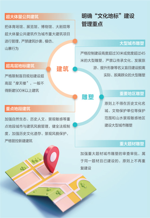 “文化地標(biāo)”是一座城市“精氣神”的集中體現(xiàn),富有歷史文化底蘊(yùn)的建筑、雕塑等,在營(yíng)造公共環(huán)境、提升文化品位、塑造城市風(fēng)貌等方面發(fā)揮著重要作用。但有些地方建設(shè)的地標(biāo),忽視本地實(shí)際、割裂歷史文脈,不僅違背了城市發(fā)展規(guī)律,也破壞了生態(tài)環(huán)境和歷史文化風(fēng)貌。