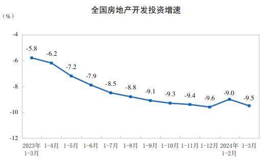 1—3月份,全國(guó)房地產(chǎn)開發(fā)投資22082億元,同比下降9.5%(按可比口徑計(jì)算,詳見附注6);其中,住宅投資16585億元,下降10.5%。