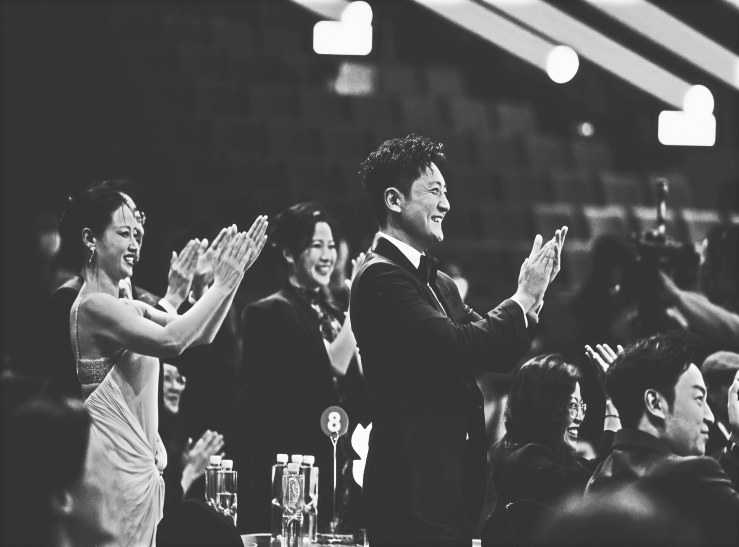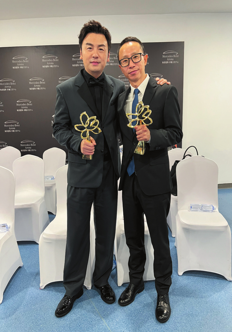 吳越與《對(duì)手》女主角譚卓在頒獎(jiǎng)典禮上合影