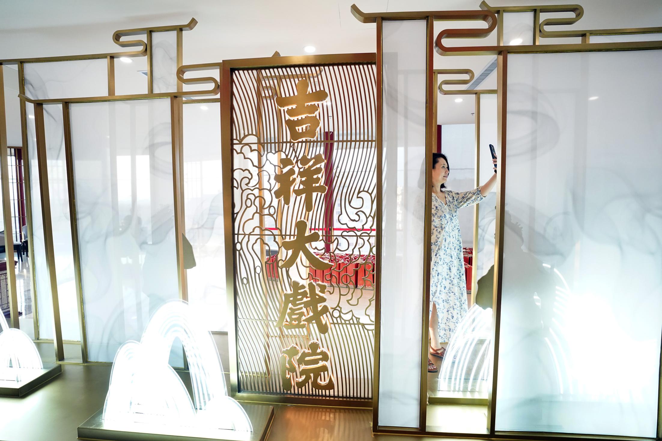 “在燈光、音響設(shè)備方面,新建成的吉祥大戲院運(yùn)用了很多‘黑科技’,再加上特殊的裝修和裝飾,構(gòu)建起了聲場(chǎng)上的原聲劇場(chǎng),演員表演可以不戴麥克風(fēng)?!奔榇髴蛟憾麻L(zhǎng)富博洋說。這里并非當(dāng)下常見的大型扇形劇場(chǎng),長(zhǎng)方形的空間里,300多個(gè)座席分為上下兩層,觀眾無論坐在哪一排,與舞臺(tái)之間的距離都不算遠(yuǎn)。