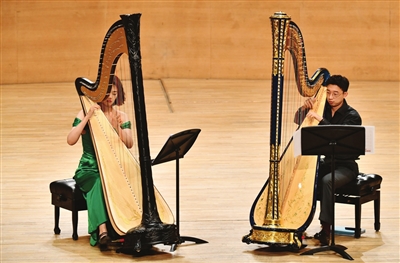 ?7月28日,“真愛永恒”海豎琴二重奏音樂會在天津大劇院音樂廳上演。
