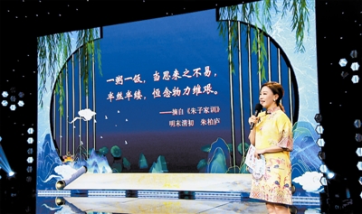 整場(chǎng)節(jié)目緊扣“以詩(shī)會(huì)友”的主題,穿插“詩(shī)詞對(duì)對(duì)碰”“詩(shī)詞互動(dòng)劇”“詩(shī)詞猜猜猜”“你比我猜”等多個(gè)游戲環(huán)節(jié),并邀請(qǐng)諸多藝術(shù)名家到場(chǎng)獻(xiàn)藝,融入情景講述、詩(shī)詞歌曲、原創(chuàng)朗誦、京劇選段、燈光秀等多種豐富多彩的文藝節(jié)目。其中,播音表演藝術(shù)家丁涵攜播音員芬菲帶來(lái)原創(chuàng)朗誦《強(qiáng)核報(bào)國(guó)王承書》、主持人網(wǎng)紅孫媛帶來(lái)情景講述《詩(shī)詞里的文明》、天津歌舞劇院女高音歌唱家張晏蓉演繹原創(chuàng)歌曲《清平樂(lè)·秋思》、天津市青年京劇團(tuán)京劇名家張悅帶來(lái)京劇選段《紅娘》、青年歌手李安娜帶來(lái)歌曲《相見(jiàn)歡·獨(dú)上西樓》、梁?jiǎn)⒊示訜艄庑阏故?、李寶兒帶?lái)朗誦《少年中國(guó)說(shuō)》等緊扣主題的表演,為詩(shī)會(huì)增添色彩。