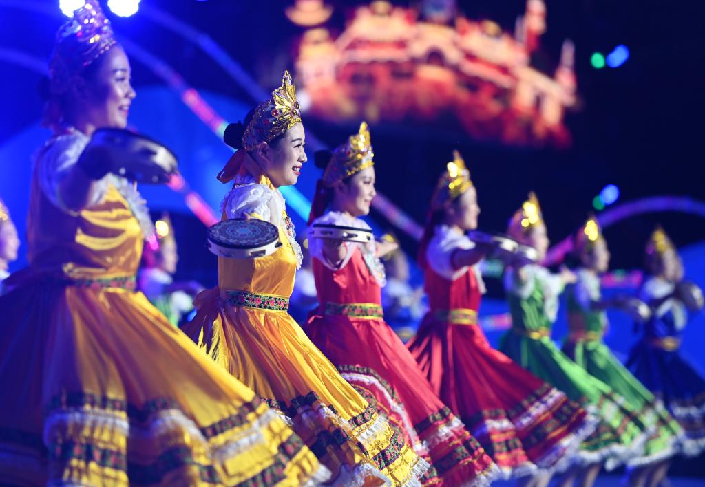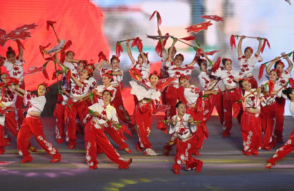 9月10日,參加展演活動的廣場舞團(tuán)隊在表演。新華社記者 趙子碩 攝
