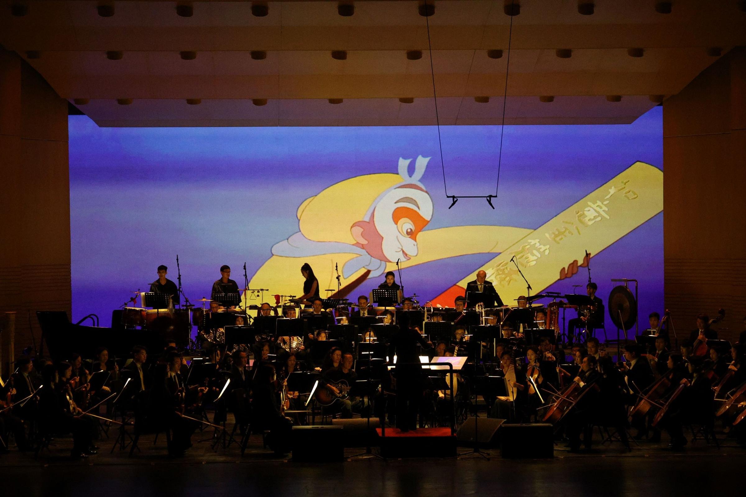 1922年,萬氏兄弟創(chuàng)作出中國首部動畫短片《舒振東華文打字機》,開啟了中國動畫新時代。轉(zhuǎn)眼間,百年已過,為紀(jì)念中國動畫的傳承發(fā)展,交響舞曲《大鬧天宮》的創(chuàng)作由此發(fā)軔。這部作品以《大鬧天宮》動畫片為基礎(chǔ),共分為“花果山美猴王”“東海得金箍棒”“官封弼馬”等9個樂章,用樂隊演奏配合影片播放的方式講述了孫悟空怒反天庭這段家喻戶曉的神話故事。