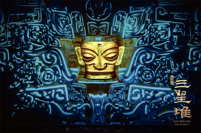 舞美設計由倫敦著名設計師摩根·拉知(Morgan Large)擔任,他曾獲2018年英國戲劇獎最佳設計獎和4次奧利弗獎、參與過《修女也瘋狂》《周日戀曲》等多部著名劇目舞美設計。舞美團隊不僅力圖在色彩和道具上還原三千年前青銅王朝的璀璨與輝煌,還通過兩百余臺電腦燈呈現(xiàn)不同場景的光影效果。觀眾將非常幸運地首次在音樂劇舞臺上,一次性看到青銅大立人、青銅大面具、青銅神樹等極具三星堆代表性文物的復刻版,加上極具沖擊力和感染力的多媒體技術(shù),生動展現(xiàn)了三千年前古蜀國的璀璨與輝煌。