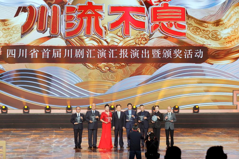 當(dāng)日,“川流不息”四川省首屆川劇匯演匯報(bào)演出暨頒獎(jiǎng)活動(dòng)在成都城市音樂(lè)廳舉行,集中展示川劇匯演成果,藝術(shù)呈現(xiàn)川劇藝術(shù)精粹,為優(yōu)秀劇目獎(jiǎng)、特別貢獻(xiàn)獎(jiǎng)、年度英才獎(jiǎng)、組織工作獎(jiǎng)?lì)C獎(jiǎng)。