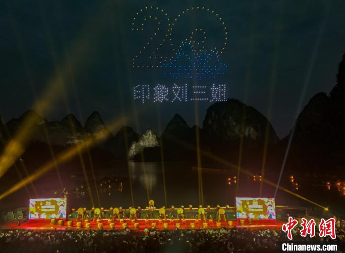中新網桂林3月21日電(周利朔 蔣豐慧)3月20日晚,廣西桂林山水實景演出《印象·劉三姐》歡慶公演20周年,總導演王潮歌等藝術家與政商文旅界人士齊聚慶典現(xiàn)場,與中外游客共襄盛舉。