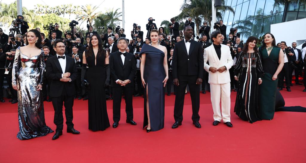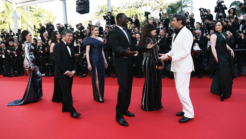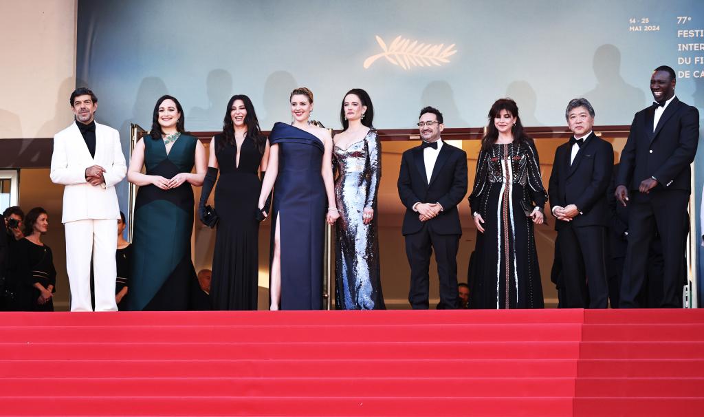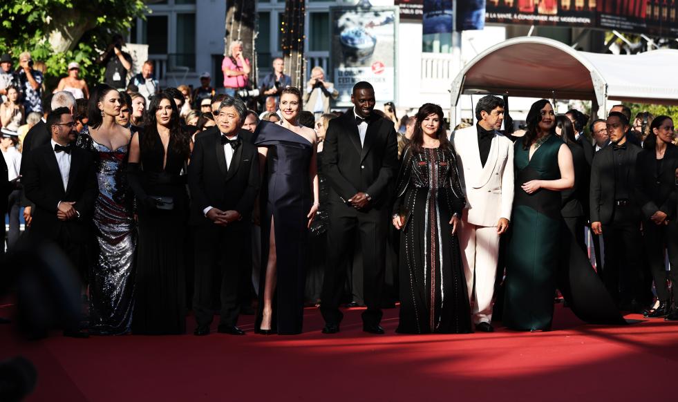 5月25日,在法國南部城市戛納舉行的第77屆戛納電影節(jié)上,主競賽單元評委抵達閉幕式紅毯。新華社記者 高靜 攝