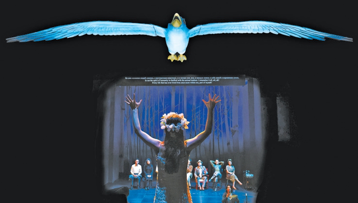 為了實(shí)現(xiàn)這一理念,劇組對(duì)舞臺(tái)進(jìn)行了大刀闊斧的改造,拆除了部分觀眾席座位,使得舞臺(tái)與觀眾席之間形成了一條真實(shí)的“路”。一只巨大的海鷗懸掛在觀眾席上方,成為連接現(xiàn)實(shí)與戲劇世界的紐帶。這種獨(dú)特的舞臺(tái)設(shè)計(jì),讓每一位走進(jìn)劇場(chǎng)的觀眾可以看到一個(gè)與傳統(tǒng)鏡框舞臺(tái)截然不同的開放式空間,它打破了舞臺(tái)與觀眾席之間的界限,不僅營造出一種開放而沉浸的觀演環(huán)境,讓演員的表演更加自然流暢,也讓觀眾能夠更加近距離地感受到劇中人物的情感波動(dòng)和命運(yùn)變遷。