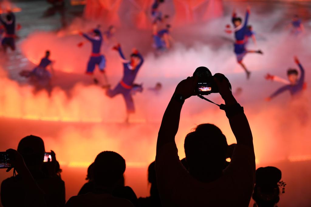 9月20日,游客在貴州省雷山縣大塘鎮(zhèn)觀看苗族歌舞詩劇《仰歐?!贰P氯A社發(fā)(陳孝新攝)