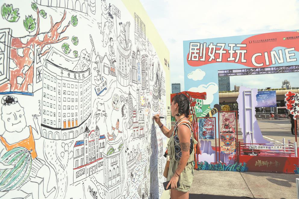 胡子拉碴的警員阿Sir、動(dòng)畫(huà)電影《馴龍高手》中的無(wú)牙仔、充滿懸念的“醬園弄現(xiàn)場(chǎng)”……在上海展覽中心,立有一塊由插畫(huà)師Rosá玫瑰與市民共創(chuàng)的“我的電影故事”畫(huà)板,一筆筆手繪中埋下很多城市彩蛋與弄堂故事,更有影迷在空白插畫(huà)區(qū)記錄下自己的“私影史”。畫(huà)板右上角有一處方方正正的電影院簡(jiǎn)筆畫(huà),連進(jìn)場(chǎng)路線都用火柴人標(biāo)注清楚,Movieland小程序工作人員韓語(yǔ)指著這處手繪告訴記者:“一位影迷過(guò)來(lái),說(shuō)‘怎么能沒(méi)有我們滬北電影院呢?我也要畫(huà)一個(gè)’,他就趴在畫(huà)板畫(huà)了快半小時(shí),昨天太陽(yáng)那么大,背都曬紅了?!?/p>