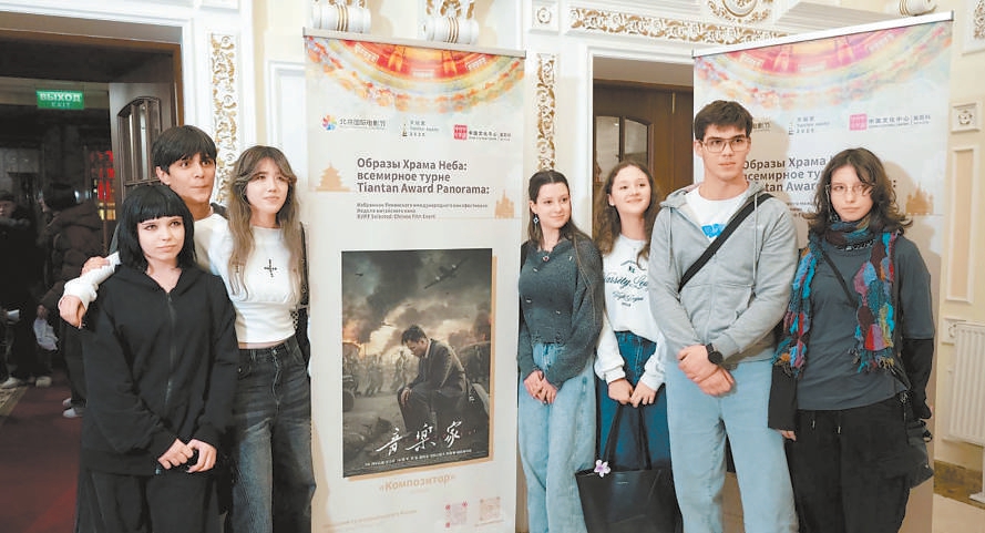 俄羅斯觀眾熱情參加北京電影“走出去”交流活動(dòng),與喜愛的電影海報(bào)合影。